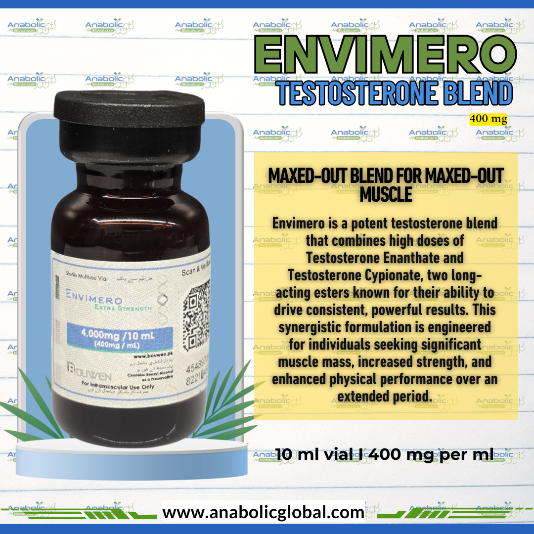 Envimero is a testosterone blend that contains two different testosterone esters. Envimero is designed to provide a fast yet extended release of testosterone. This product is manufactured by using technologies of high-percentage drug synthesis resulting in by 20% higher concentration of the active agent per ml as compared to the standard testosterone blended version.